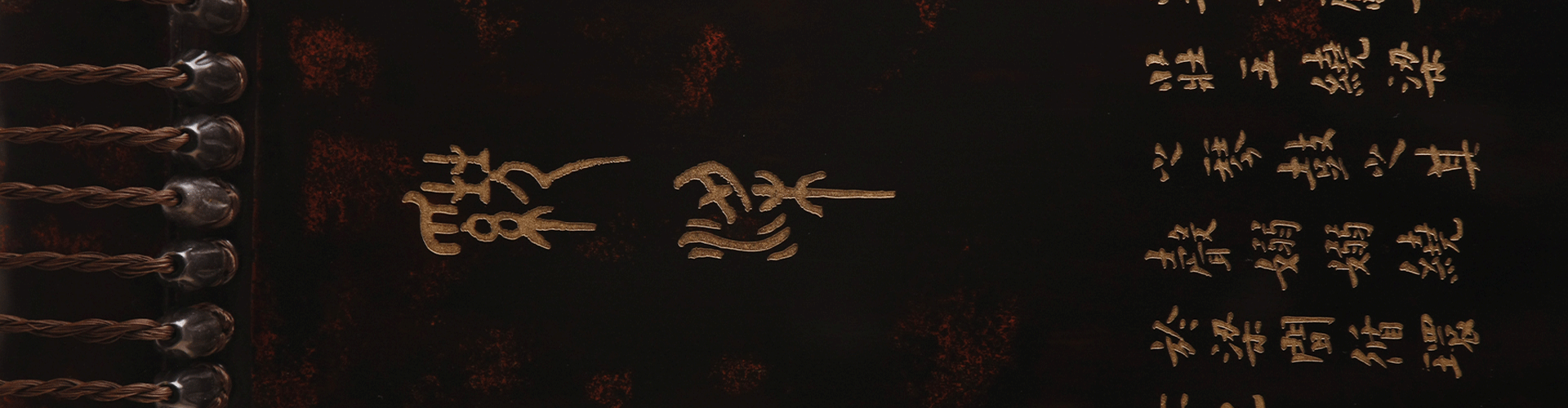 “绕梁”琴肩颈特色与时人相仿,颈短且二徽起肩,曲线唯美雅致,造型流畅跌宕。明代杉木为面,髹以传统大漆灰胎,散嵌朱光。琴名以金文大篆书写,以显其高古之风。龙池凤沼皆为浑圆,琴声清润,音色绵延,弥久回环,只且轻奏,于不同音区间游走,余韵萦绕不断,正如铭文所述“其声嫋嫋,绕于梁间,循环不已”,更可感“余音绕梁,三日不绝”之绝妙佳境。