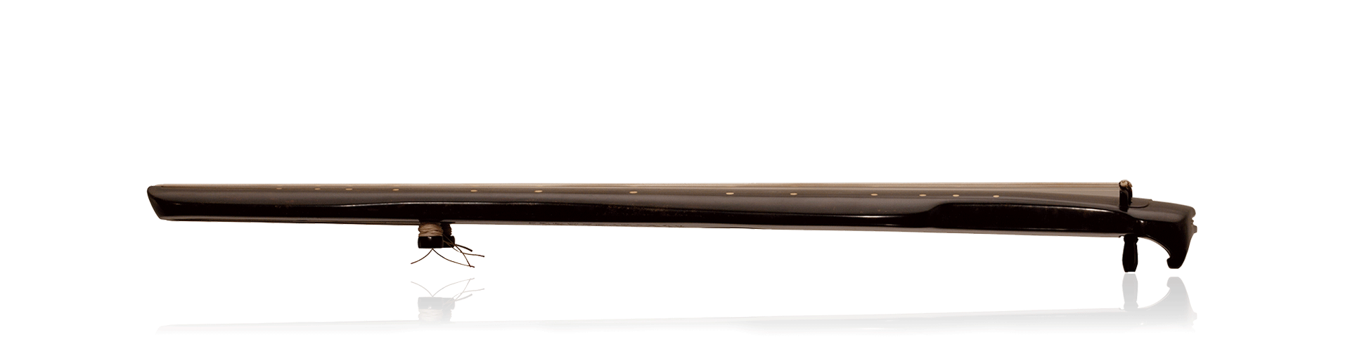 无痕,倚道琴剑式,为王鹏新创古琴形制,传神写意青铜剑器,形意叠合,旨在表征君子琴心剑胆,并蕴刚柔。“无痕”造型朗逸舒展,浑厚内敛,圆中有方;线条隐褪棱角,宛若天工,行走无痕。同时“肩垂而阔”,颇显盛唐古风。《老子》之谓“善行无辙迹”,即琴名由来。