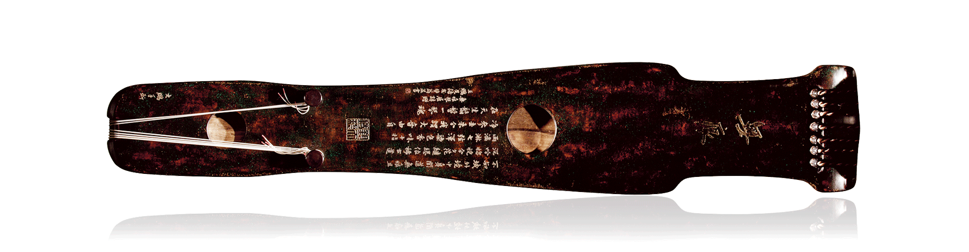 此式曾为钧天坊2012年国家大剧院《无痕——当代琴人生活美学与生命态度》古琴展的主展琴,也曾参加2010年国家大剧院《“高山流水”——古琴艺术展》。此琴乃是传统琴器之严谨法度、高古气息,与当代艺术之创新理念、语言表达无痕结合的典范。