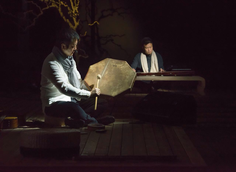 及至全场黑暗,随着一声声清脆如铃音般的音乐,之前怀抱吉他的歌者手握拇指琴营造空灵,再次与箫、大提琴相呼应,时而低吟,时而高亢,让人的身体跟随着音乐情绪而穿行,而放空。